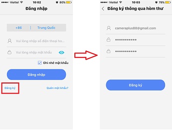 B1: Trước tiên thì ta phải cắm ngồn và thẻ nhớ cho camera yoosee rồi bật điện thoại lên tải phần mềm xem camera “yoosee” về điện thoại của mình , tải xong các bạn mở phần mềm yoosee lên chúng ta sẽ phải đăng ký một tài khoản bằng mail của mình