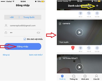 B2: Đăng ký xong bạn đăng nhập luôn vào phần mềm camera yoosee.Khi đăng nhập xong sẽ hiện ra danh sách thiết bị các bạn bấm vào dấu “ +” để bắt wifi cho camera yoosee của mình (lưu ý điện thoại của các bạn phải bắt wifi nơi đặt camera yoosee)