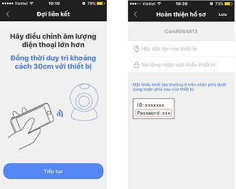 Sau khi kết nối thành công thì chúng ta sẽ điền tên camera và mật khẩu (mật khẩu mặc định thường là 123)