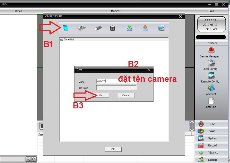 Do nhu cầu sử dụng nhiều camera, nhiều nơi khác nhau nên chúng ta cần sử dụng phần mềm CMS để quản lý camera tập chung phần mềm này có thể xem được nhiều đầu ghi camera cung lúc tối đa là 64 mắt camera trên một màn hình.