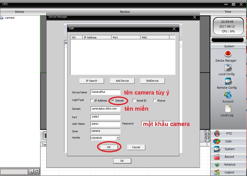 Hướng dẫn sử dụng phần mềm cms xem camera benco, samtech, hdpro, …..camera có port 34567