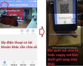 B3: Lấy điện thoại đăng nhập tài khoản cần Share rồi quét mã vạch