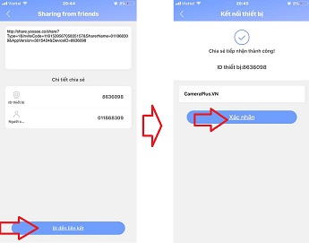 B4: Xác nhận chia sẻ thế là bạn đã chia sẻ cho tài khoản khác camera yoosee của bạn (tài khoản được chia sẻ chỉ xem được không xem lại hay cài đặt được)